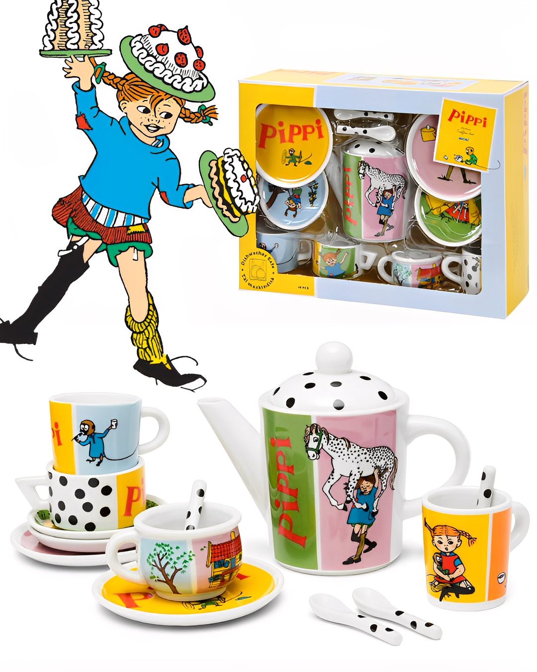 Lína Langsokkur Postulíns Kaffistell