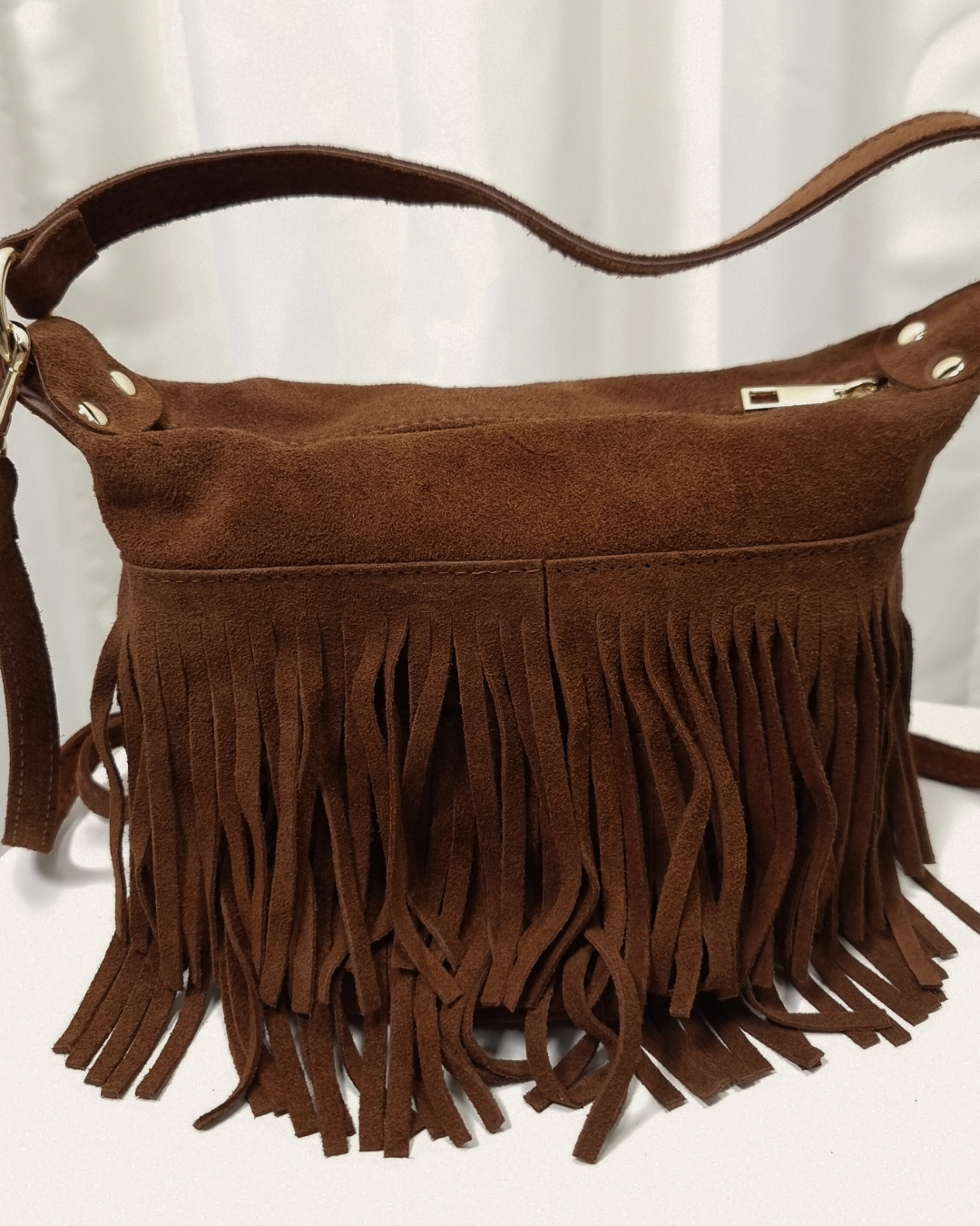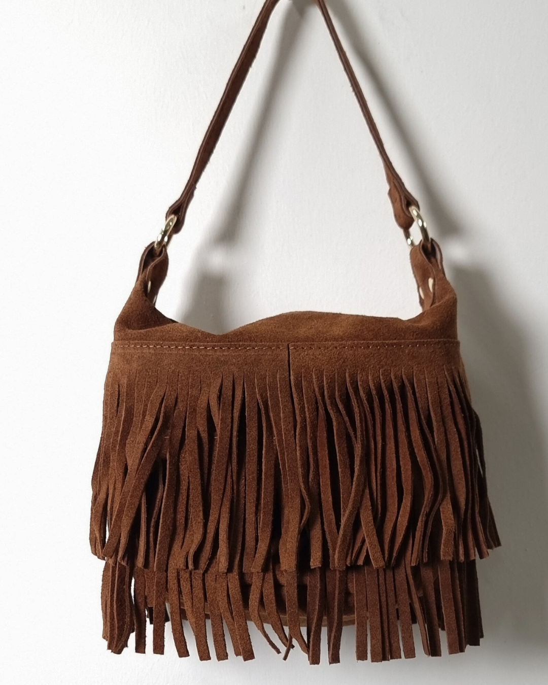 Tanis Ítölsk Rúskinnstaska Cognac